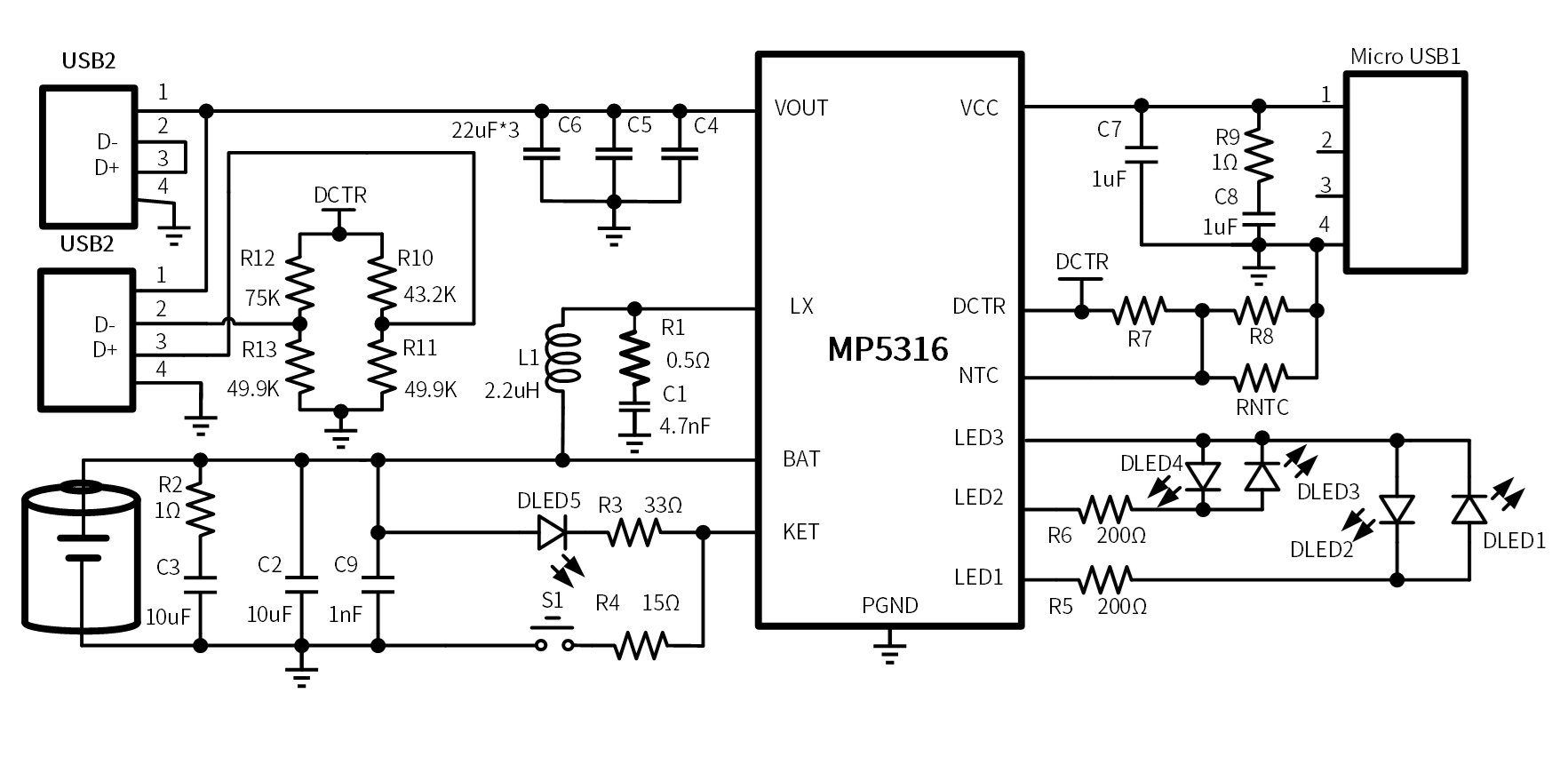 MP5316 is a power bank solution device which is highly integrated with switch charger, LED display cell and synchronous boost output.