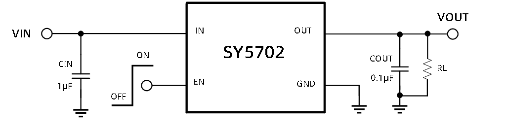 The SY5702 is an ultra-low quiescent current (IQ: 250nA, ISD: 10nA) load switch with reverse current protection and high switching speed. It integrates a 42mΩ (typ.) N-channel MOSFET, which can work with input voltage range of 1.2V to 5.5V and load 2A continuous current.