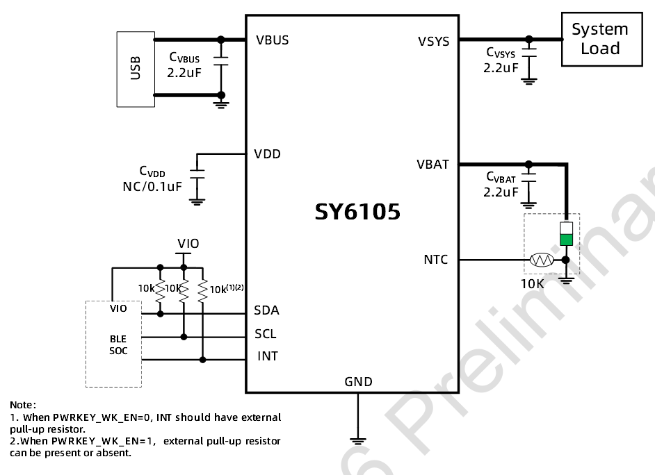 The SY6105 is a 1.04A highly integrated single cell linear battery charger IC with power path management for wearable and IoT devices using Li-ion/Li-Polymer batteries. The I2C serial interface with charging and system setting can be allowed to be controlled flexibly.