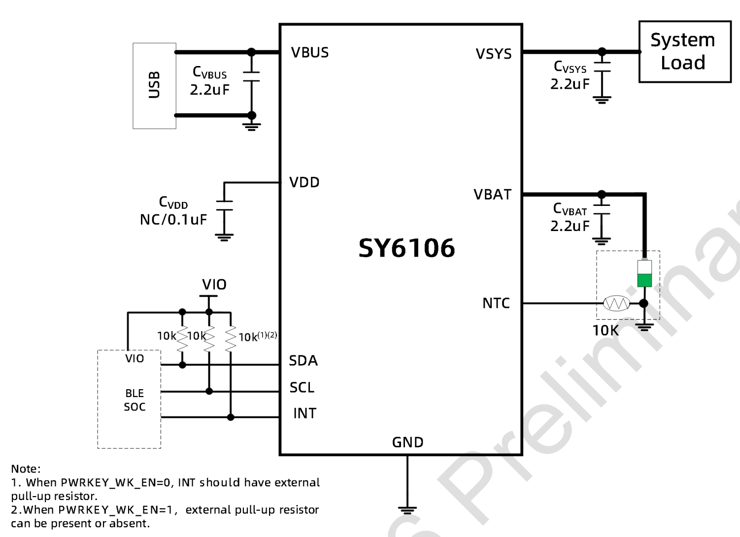 The SY6106 can automatically complete charger phase include pre-charge, fast charge, charge termination. Also monitor battery temperature during charging. Power path management will provide higher priority system load even with depleted battery.